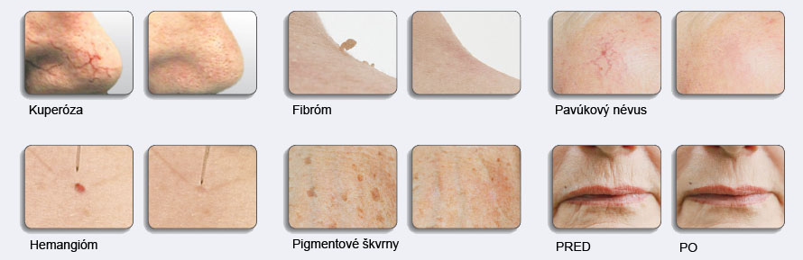 - Bodové uzatvorenie ciev (napr. pri teleangiektáziách, pavúčikovitovom néve)
